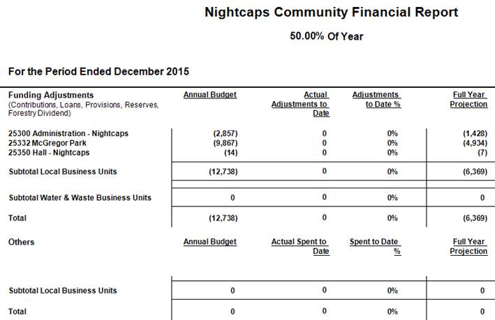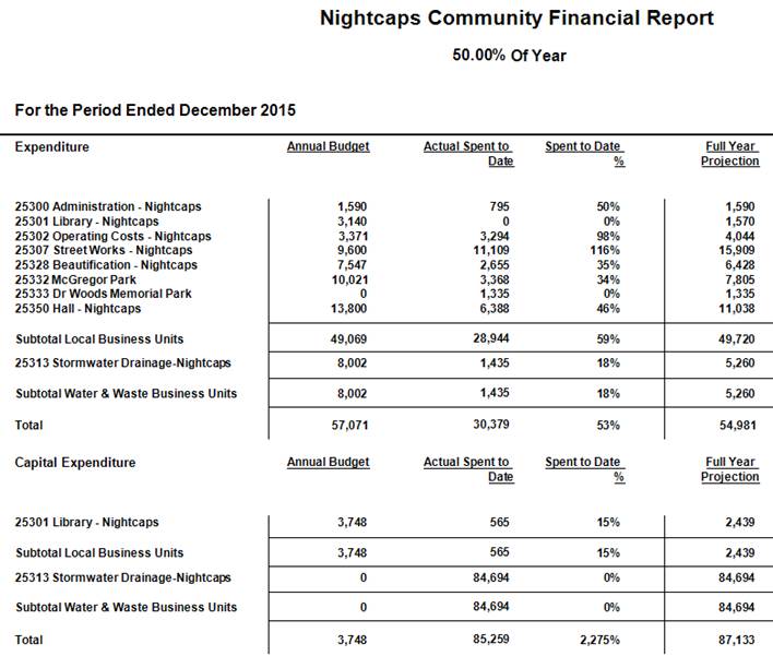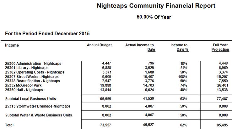 7.1 Works and Finance to Nightcaps Community Development Area Subcommittee for the period ended 31 December 2015 17