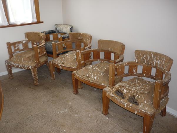 These are the original boardroom table and chairs used by the Ohai Railway Board. Five out of the nine original chairs are accounted for and are stored in the old Boardroom in the Ohai Railway Board office building. The table is in good condition and the chairs are in poor condition. Two red chairs used later by the Board are also in the room and are in good condition. The Boardroom table was initially retained by the Council after the railway, land and buildings were sold to NZ Railways but then later sold to Rugby Southland (year unknown). Rugby Southland donated the table back to the Ohai Railway Board Heritage Trust for their Museum project. As part of the dissolution of the ORBHT any donated items must be offered back to the donors however Rugby Southland have confirmed that they do not want the table to be returned and that Council can regain ownership of it.